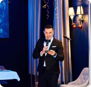 Меня зовут Павел Кожуховский и вот уже больше 10 лет я работаю в ивент-сфере. И да, еще я один из немногих ведущих, который имеет профильное образование и степень магистра по специальности «режиссура современных ивент-проектов». Я ведущий для тех, кто хочет хорошо и весело провести время на своём празднике. Если вам надоело на мероприятиях долго сидеть за столом, слушать стендап, бояться, что куда-то позовут участвовать, то я смогу порадовать вас интересными современными интерактивами. На этом сайте вы найдёте моё портфолио, познакомитесь с моим творчеством и найдете актуальную информацию.