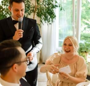 Все наши гости без исключения остались в восторге от такого приятного обаятельного душевного и позитивного ведущего. Ты покорил всех молодых гостей, а наши мамы уже твои фанатки!